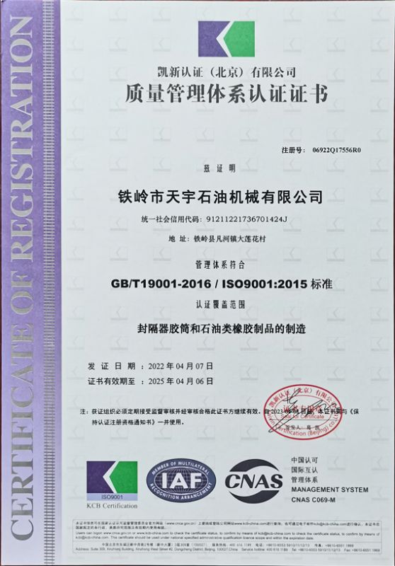 • 您好,歡迎來(lái)到鐵嶺市天宇石油機(jī)械有限公司(鐵嶺市鐵南橡膠制品廠)!
